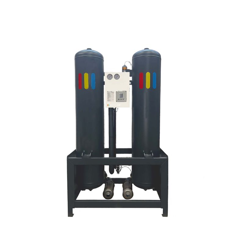 Les réservoirs et la vannerie, largement dimensionnés, prennent place sur un large châssis stable et prévu pour accueillir l’installation des filtres amont et aval dans son périmètre limitant ainsi l’empreinte au sol de l’ensemble. Pour diminuer la consommation énergétique, ces sécheurs disposent en standard d’un débit de régénération réglable permettant d’ajuster la consommation d’air comprimé nécessaire à la régénération selon la pression de service.