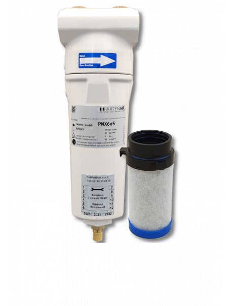 Indispensable à la plupart des installations de production d’air comprimé ! A installer après le sécheur en cas de séchage par réfrigération et après le préfiltre PNX-M dans tous les autres cas.